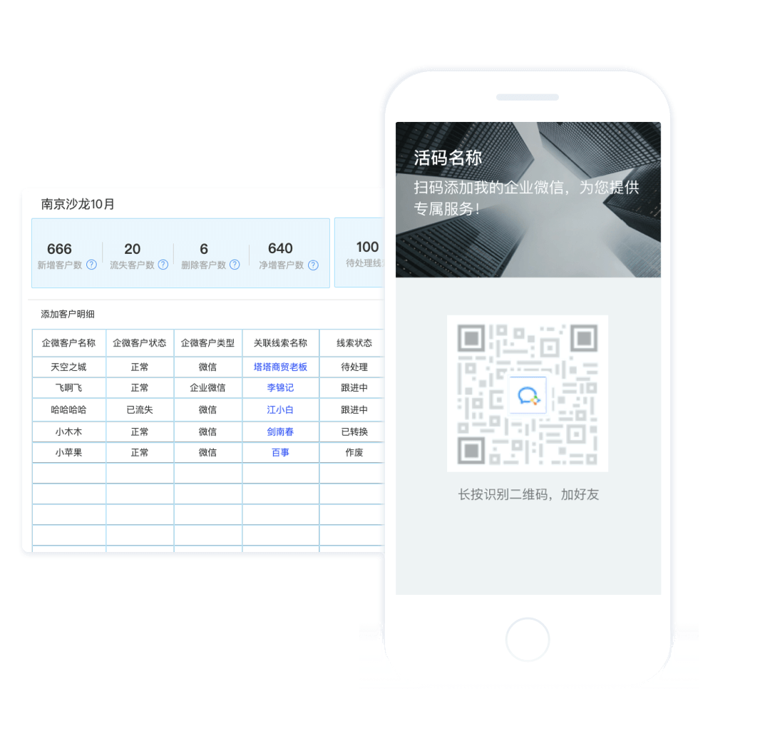 渠道活码可放在不同渠道和物料上,客户扫码会添加不同的员工账号并自动生成线索分给销售跟进,添加客户微信和分配线索一步到位,减少转化流失。还可设置通过活码添加客户的渠道标签,实时记录每个活码添加的客户数,统计不同渠道的推广效果,实现精准营销。